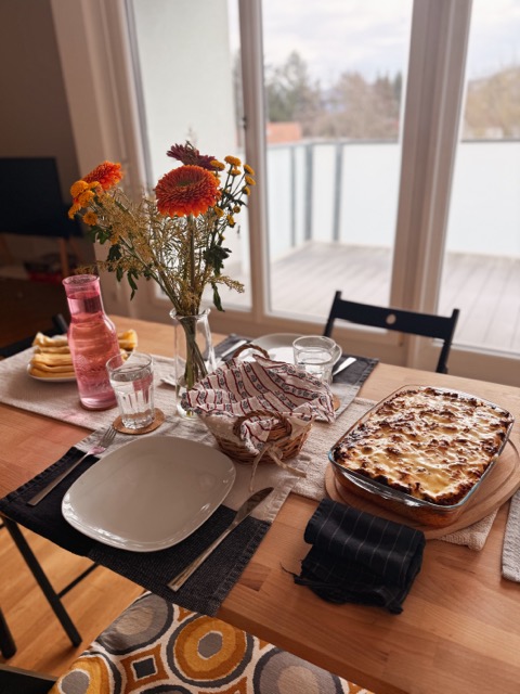 I also found myself thinking that this was probably our last weekend without the baby: the last Sunday table set without a crib standing next to it, the last Sunday morning coffee without milky little curls resting on my shoulder, the last “let’s just pop down to the bakery” Sunday breakfast without a bundled‑up little parcel dressed for the cold, and the last weekend for Rú when he isn’t a big brother yet, every single day of the week.