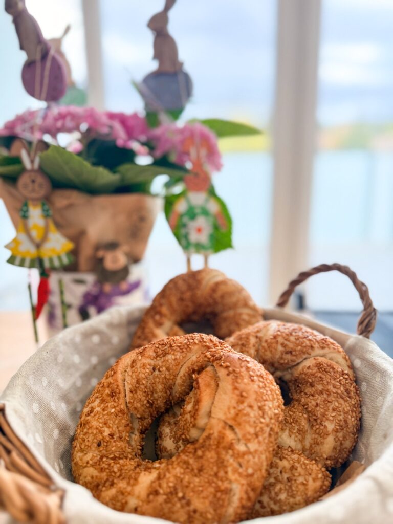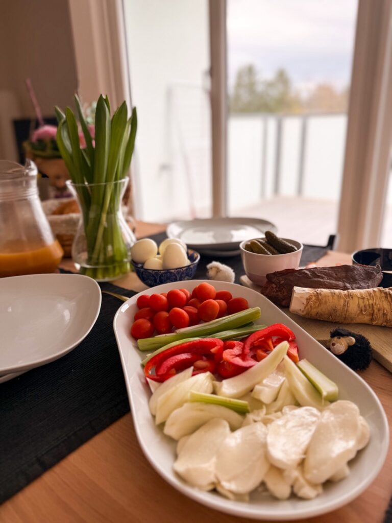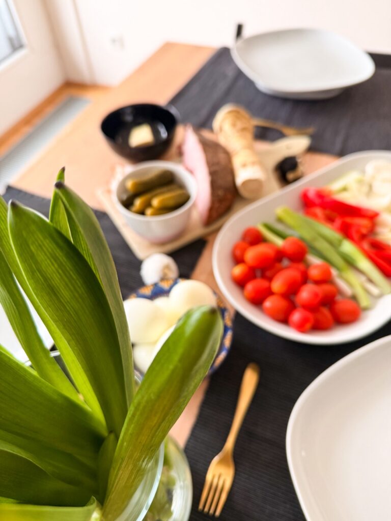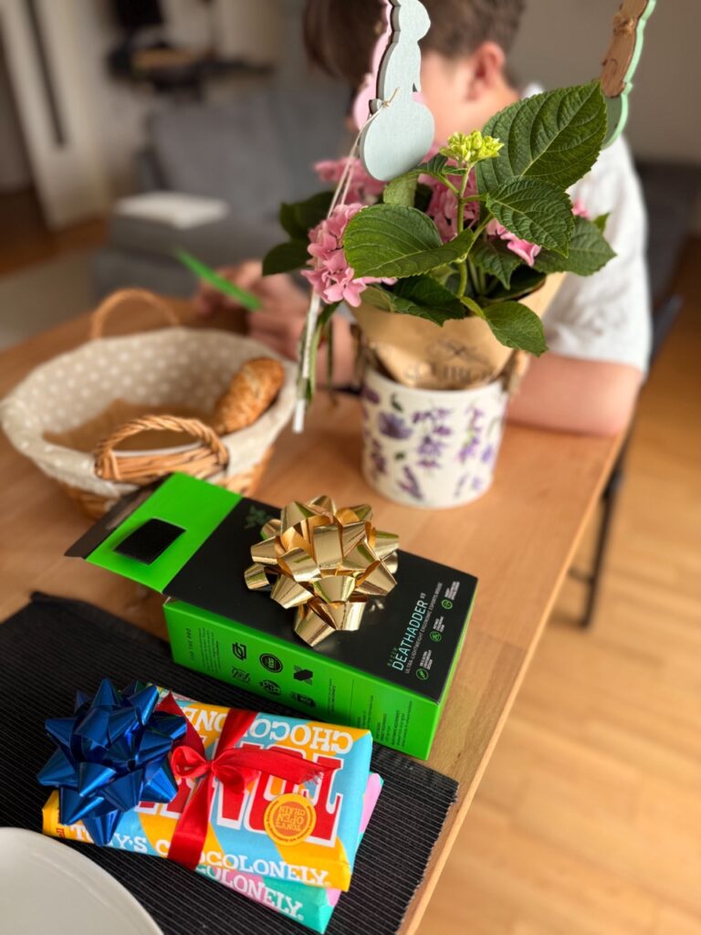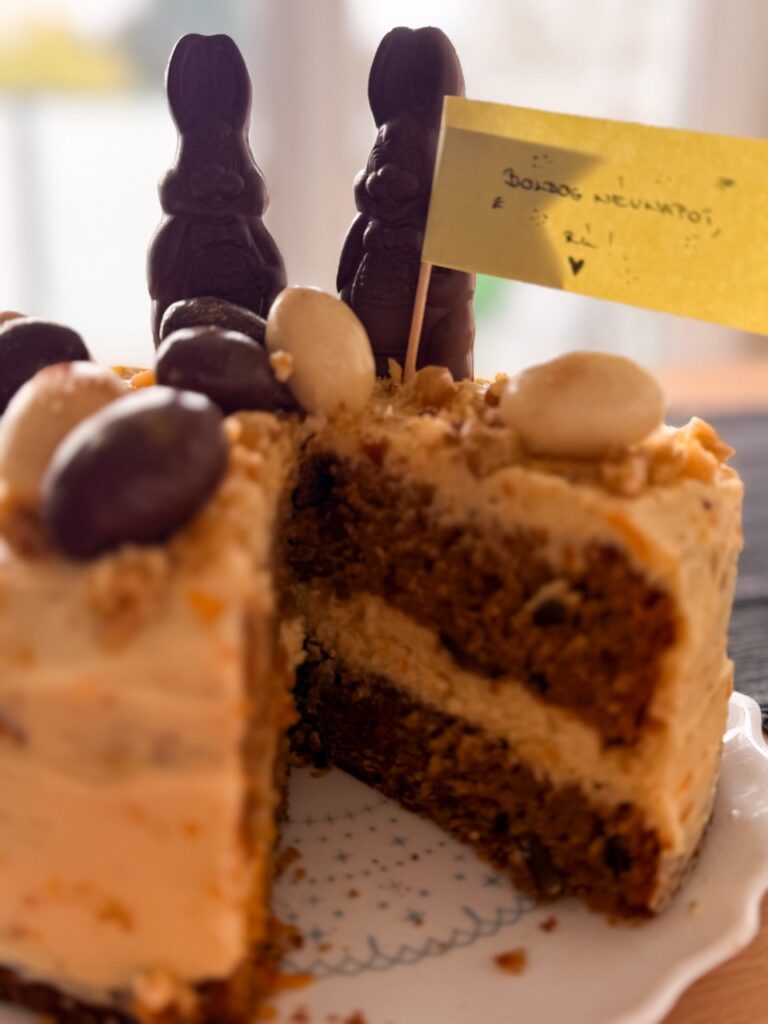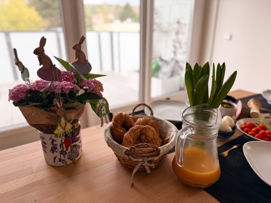 In recent years, it’s become a tradition to celebrate Rú’s name day breakfast somewhere really special, like at Budapest’s Gerbeaud in 2024 (or an unconventional name day at grandma’s during COVID on my original blog). But this year, for Easter, we opted for a home breakfast… with our expanded bunny family!